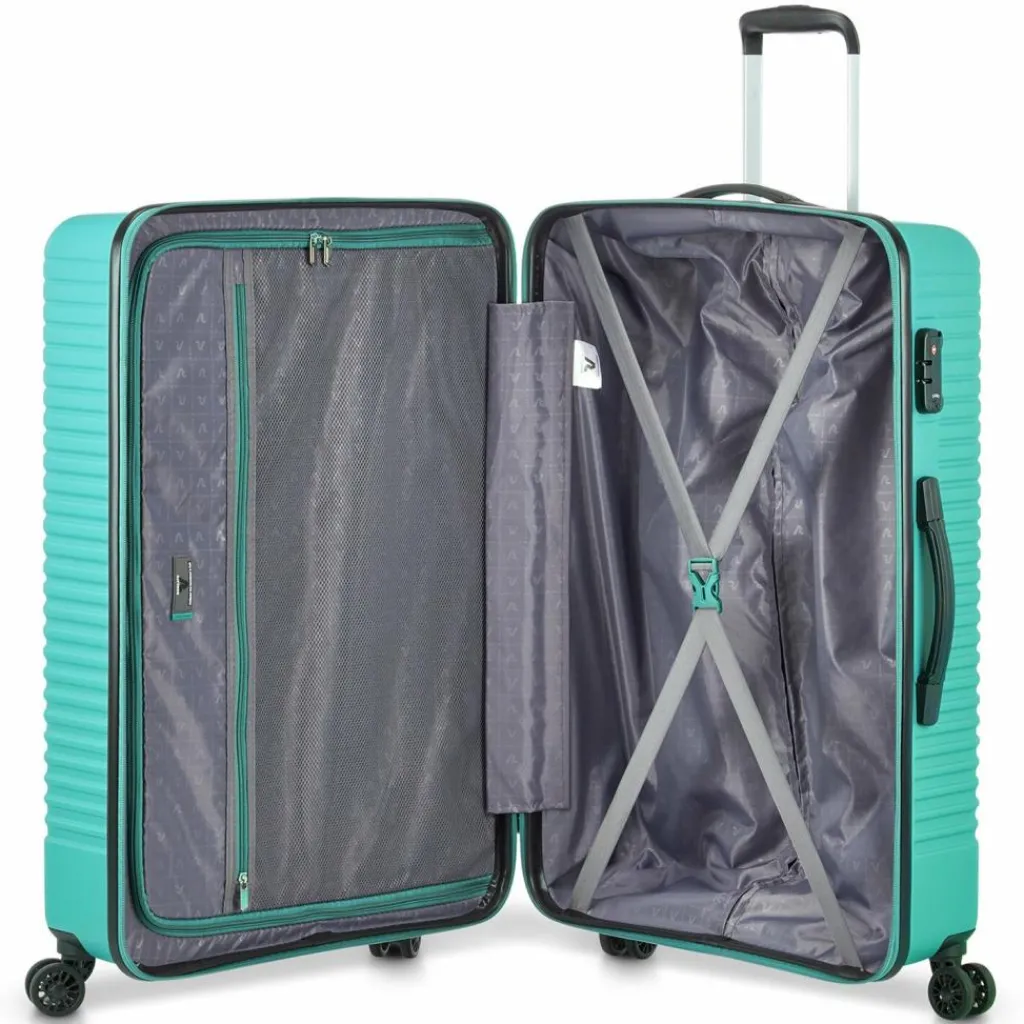 - Ausstattung: Wäschefach, Reißverschlussfach, Kreuzpackgurt, auf Trolley steckbar