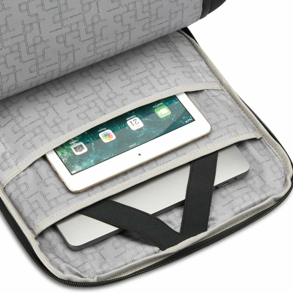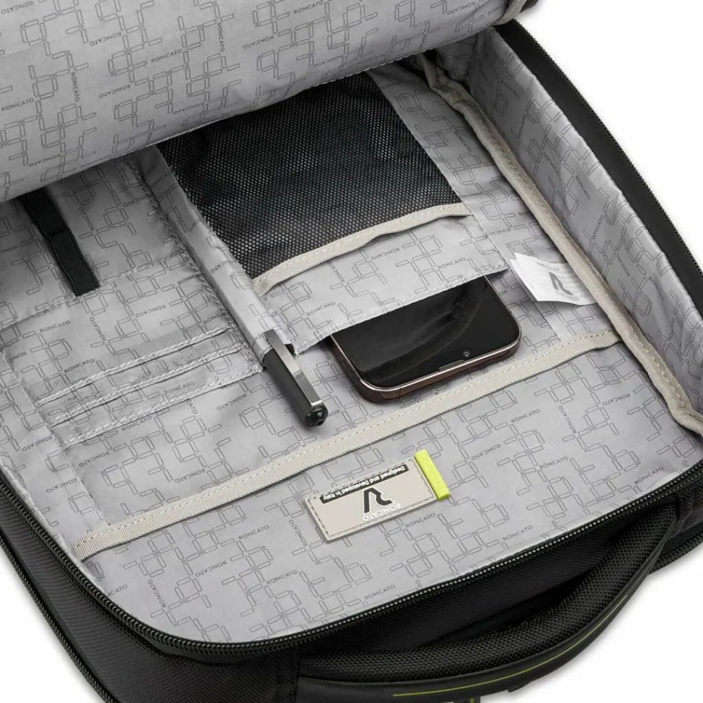 - Ausstattung: Tasche(n) innen, Tasche(n) außen, Rückenpolsterung, Netzfach, Handyfach, auf Trolley steckbar