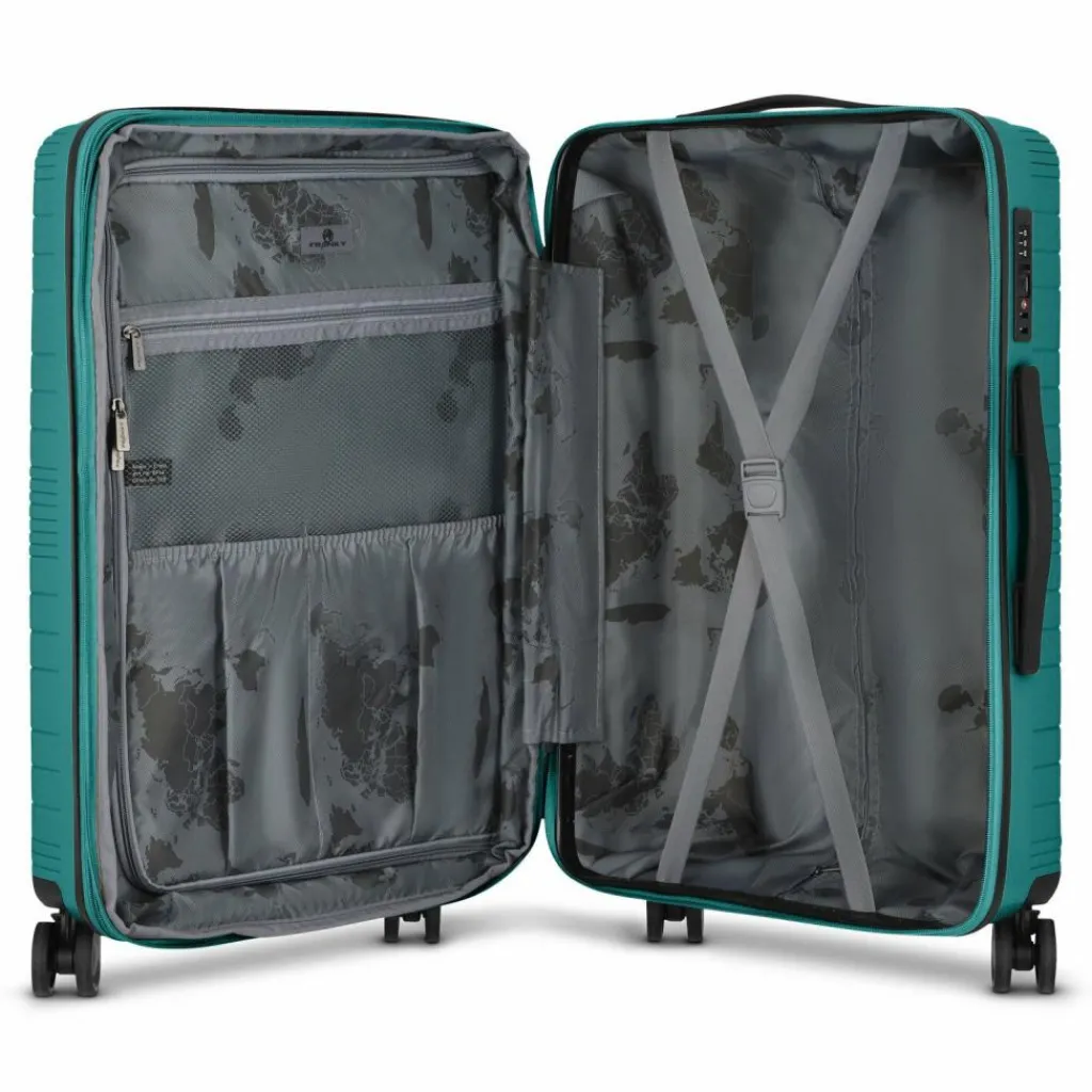 - Ausstattung:Wäschefach, Tasche(n) innen, Netzfach, Kreuzpackgurt, Dehnfalte, arretierbarer Griff