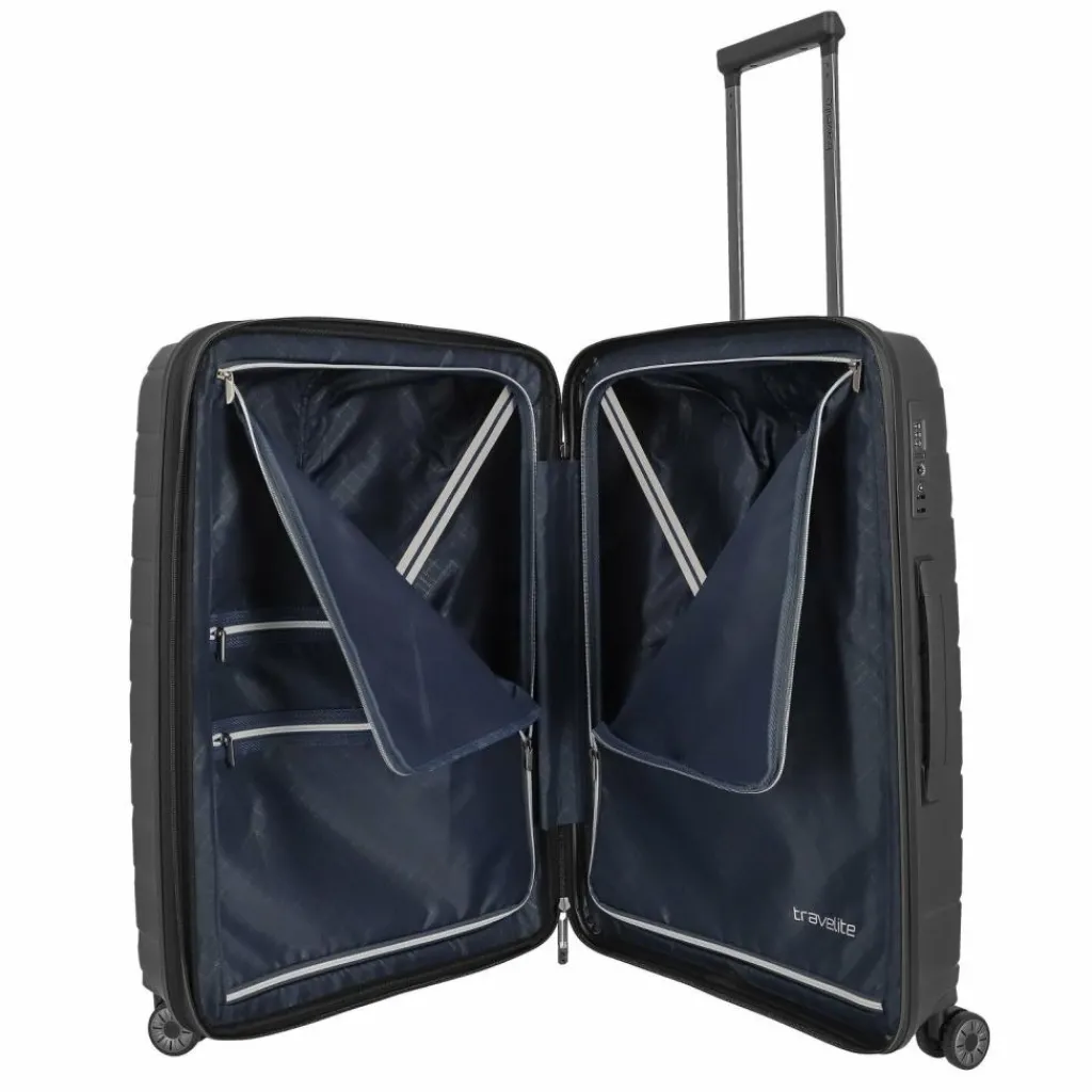 - Ausstattung:Reißverschlussfach, Kreuzpackgurt, Dehnfalte, arretierbarer Griff