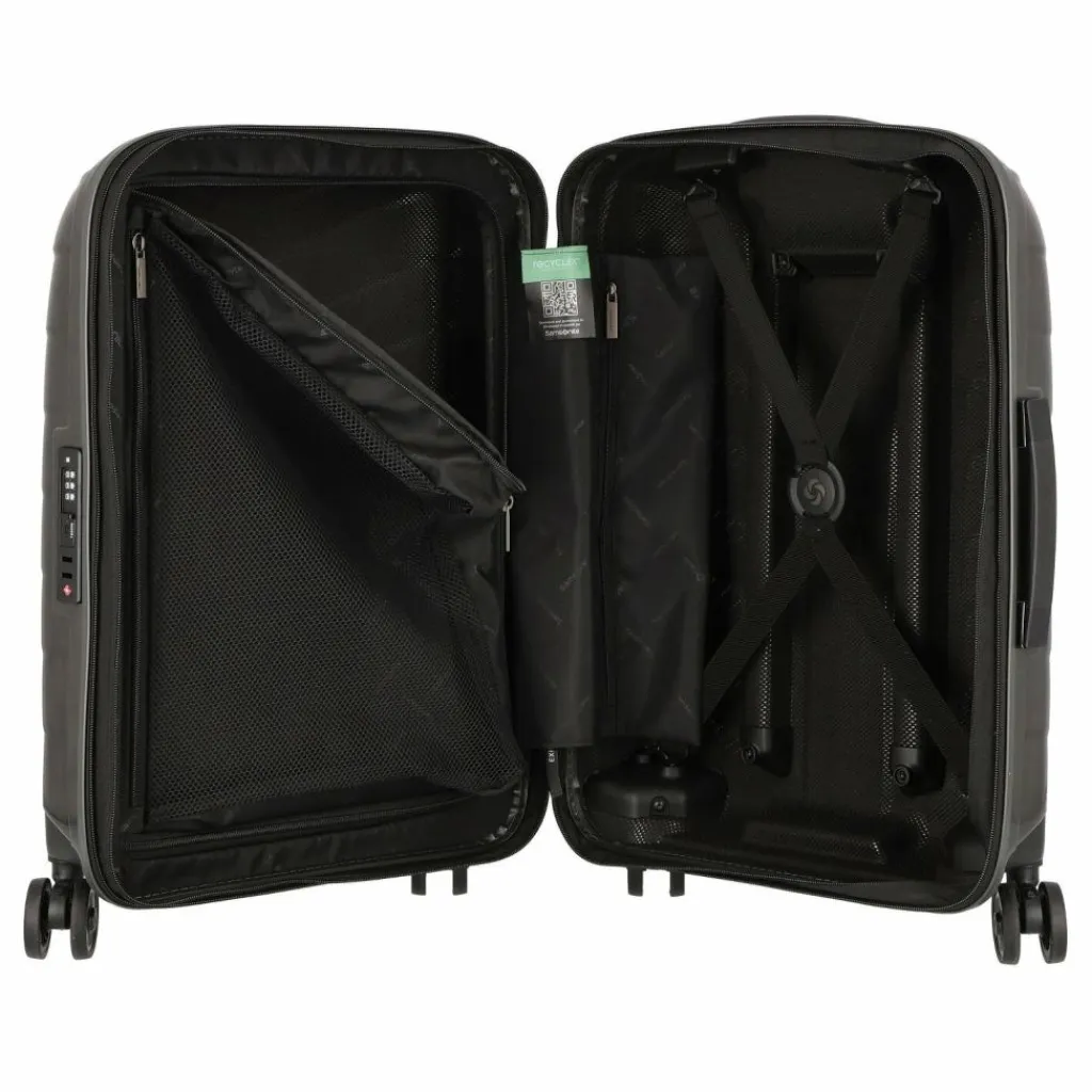 - Ausstattung: Wäschefach, Reißverschlussfach, Kreuzpackgurt, Dehnfalte, arretierbarer Griff