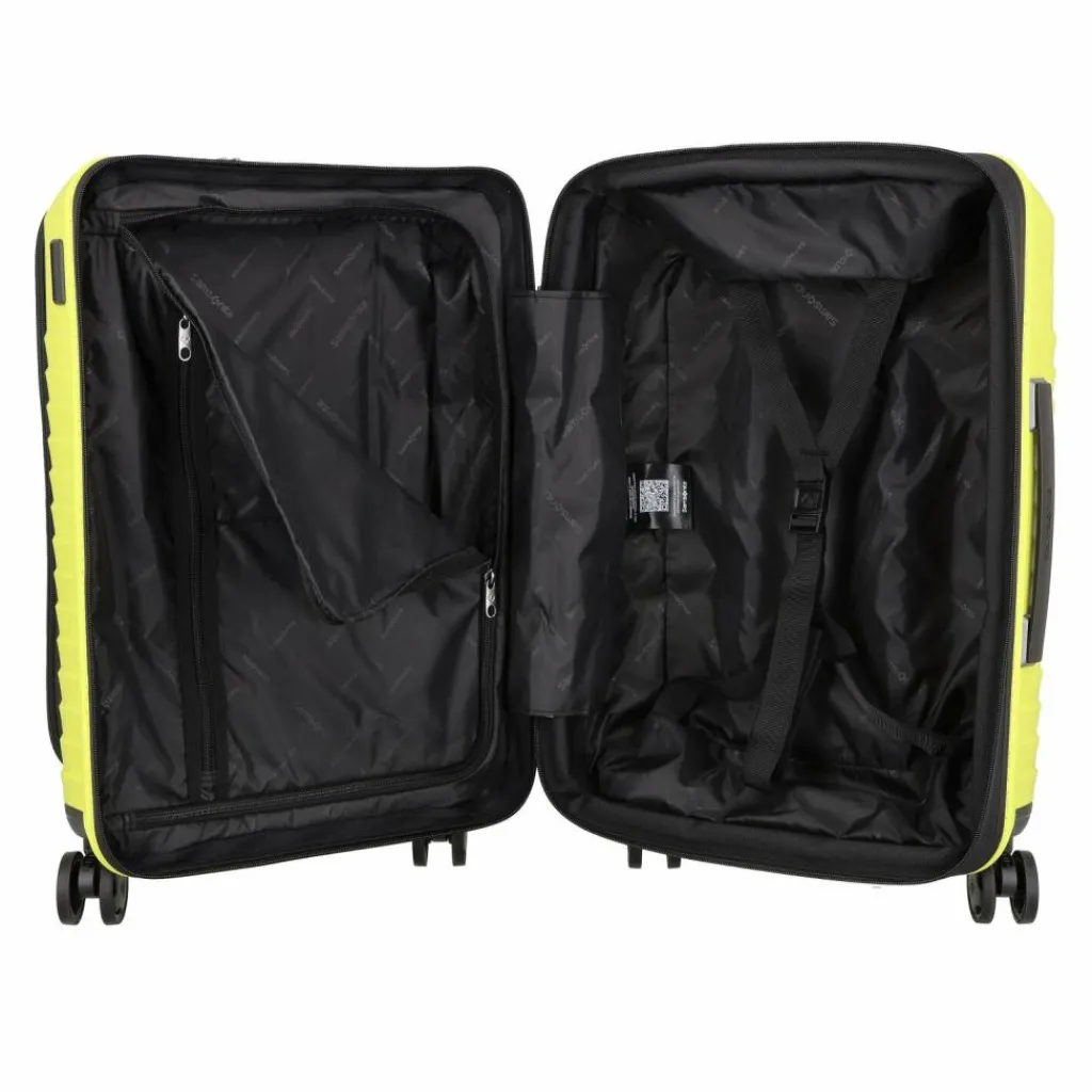 - Ausstattung: Tasche(n) innen, Tasche(n) außen, Reißverschlussfach, Kreuzpackgurt, Dehnfalte, arretierbarer Griff