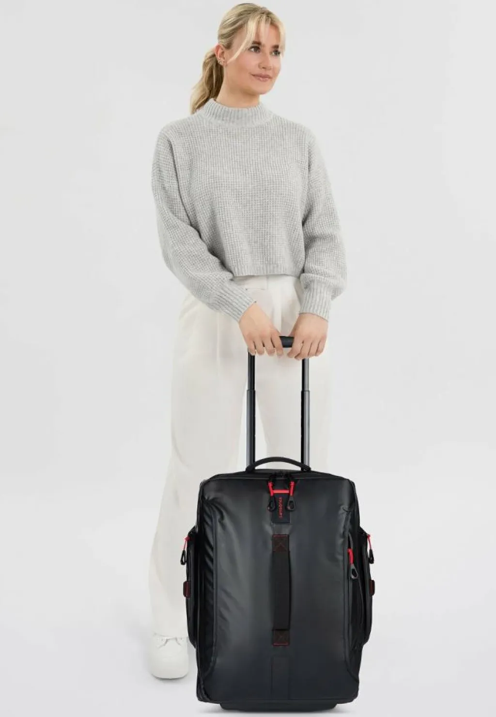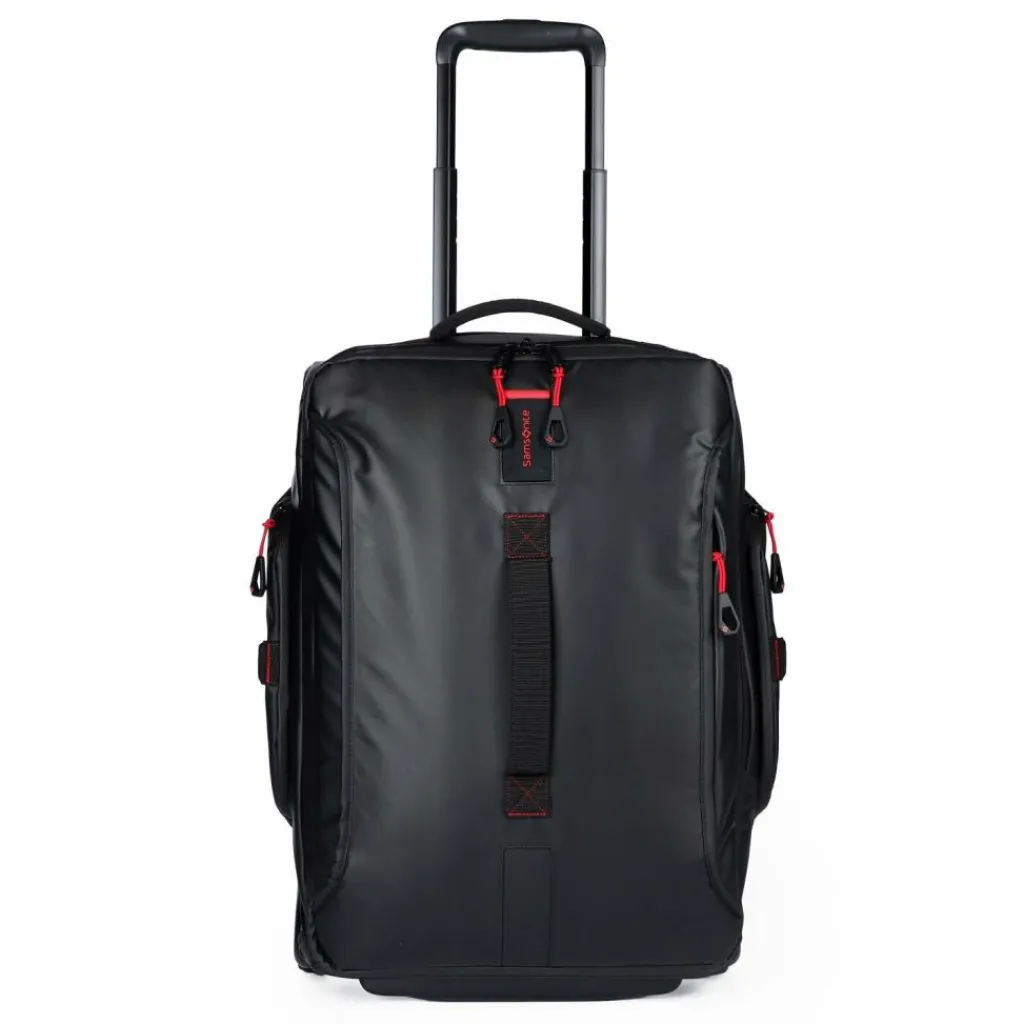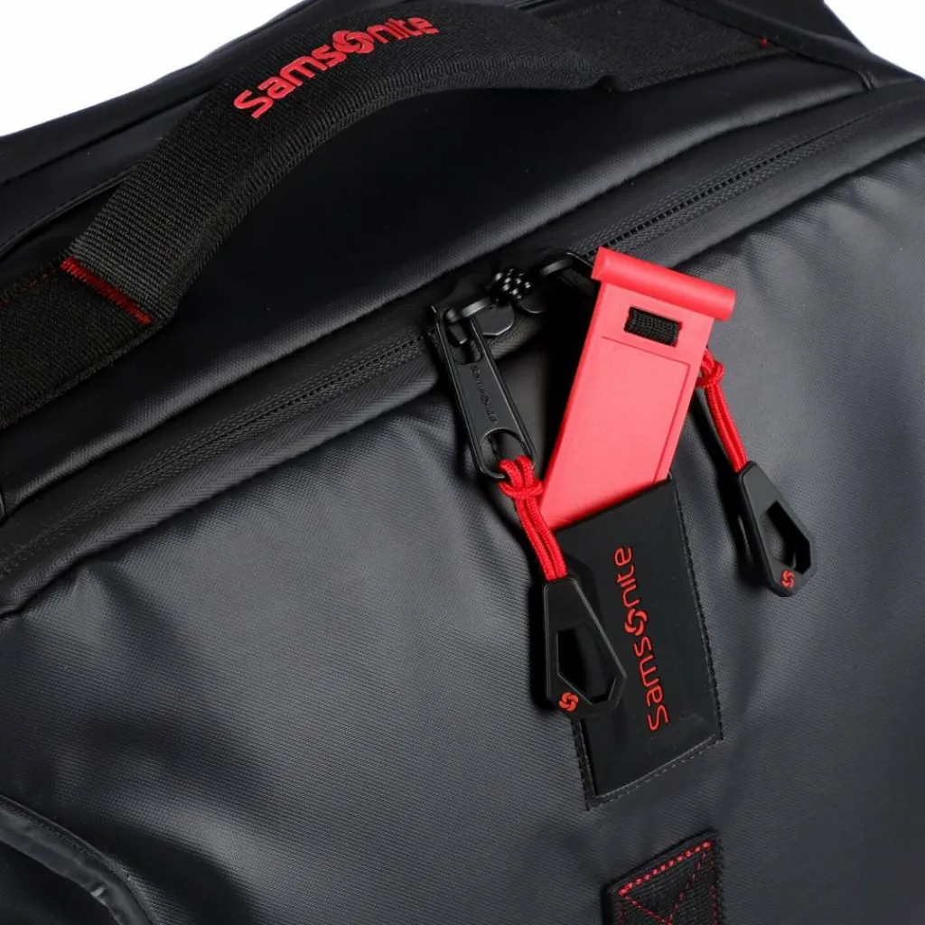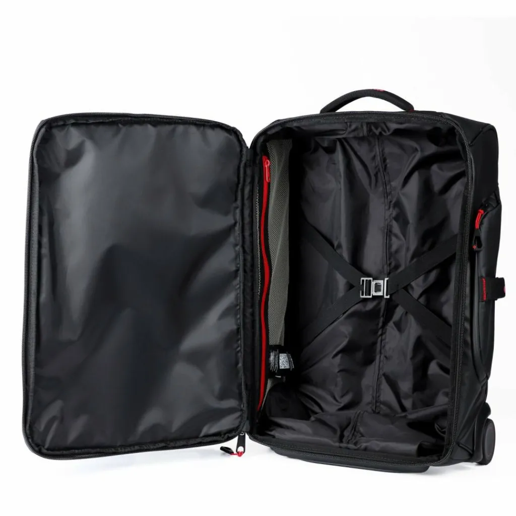 - Ausstattung: Tasche(n) innen, Tasche(n) außen, Reißverschlussfach, Kreuzpackgurt, arretierbarer Griff