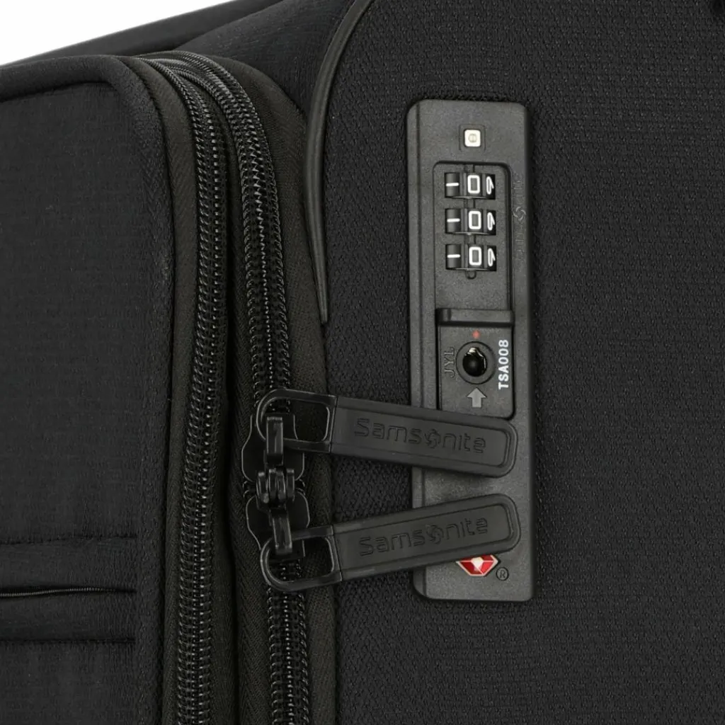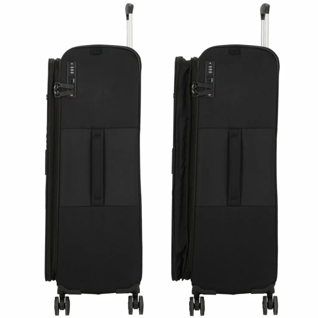 - Ausstattung: Tasche(n) außen, Reißverschlussfach, Netzfach, Kreuzpackgurt, Dehnfalte, arretierbarer Griff