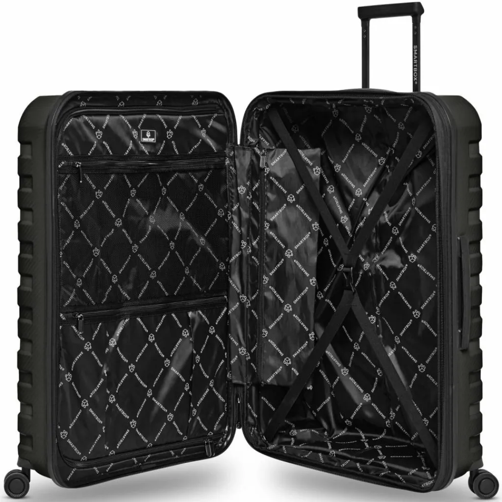 - Ausstattung: Wäschefach, Reißverschlussfach, Netzfach, Kreuzpackgurt, Dehnfalte, arretierbarer Griff
