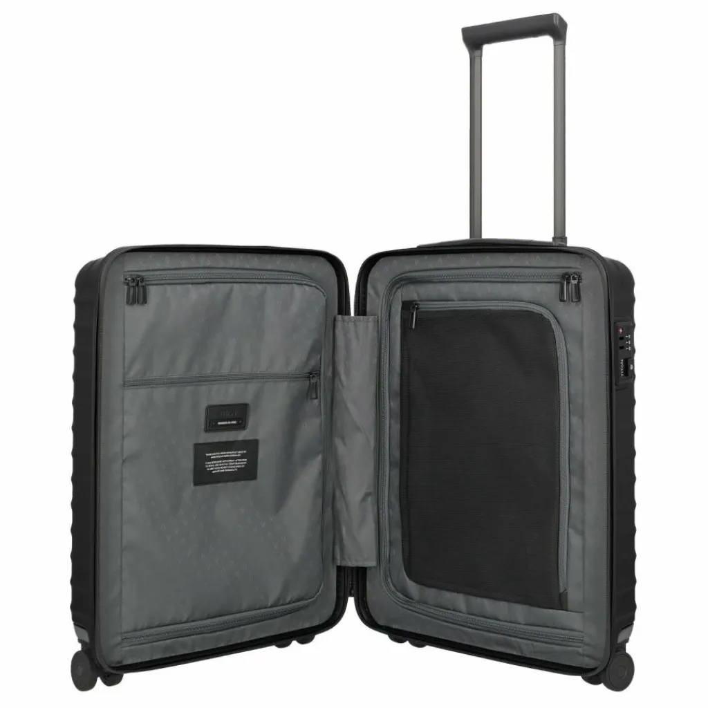 - Ausstattung: Wäschefach, verstärkte Ecken, Tasche(n) innen, Reißverschlussfach, Kreuzpackgurt, arretierbarer Griff