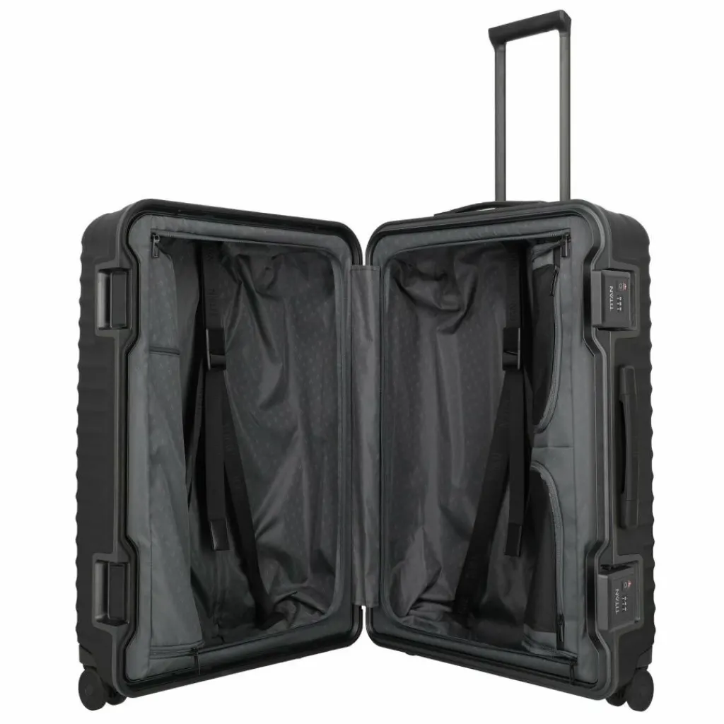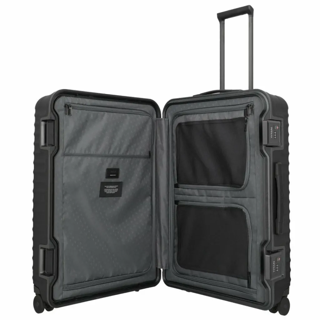 - Ausstattung: Wäschefach, verstärkte Ecken, Tasche(n) innen, Reißverschlussfach, Kreuzpackgurt, arretierbarer Griff