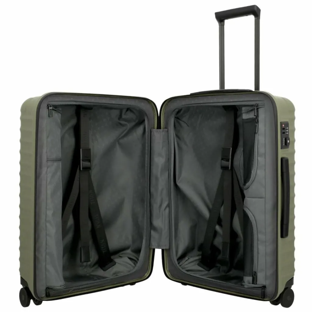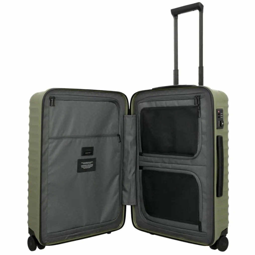 - Ausstattung: Wäschefach, verstärkte Ecken, Tasche(n) innen, Reißverschlussfach, Kreuzpackgurt, arretierbarer Griff