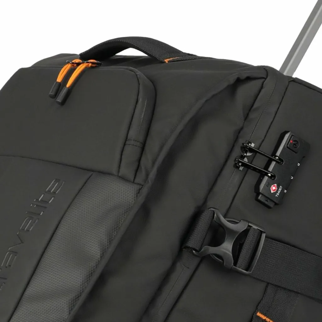 - Ausstattung: Wäschefach, Tasche(n) außen, Reißverschlussfach, arretierbarer Griff