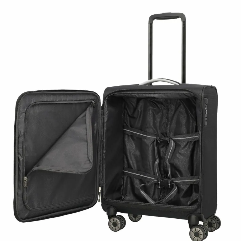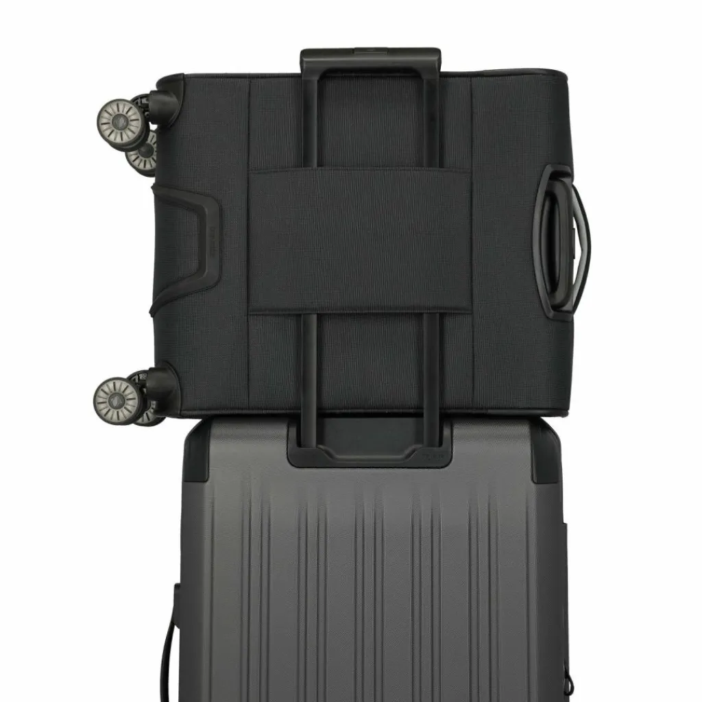- Ausstattung: Tasche(n) innen, Reißverschlussfach, auf Trolley steckbar, arretierbarer Griff
