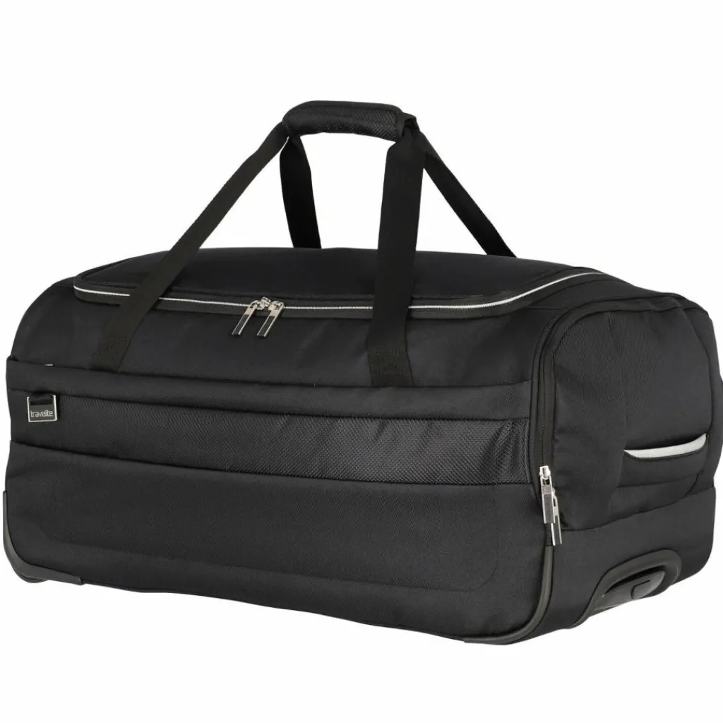 - Ausstattung: Tasche(n) innen, Tasche(n) außen, Reißverschlussfach, Netzfach, arretierbarer Griff