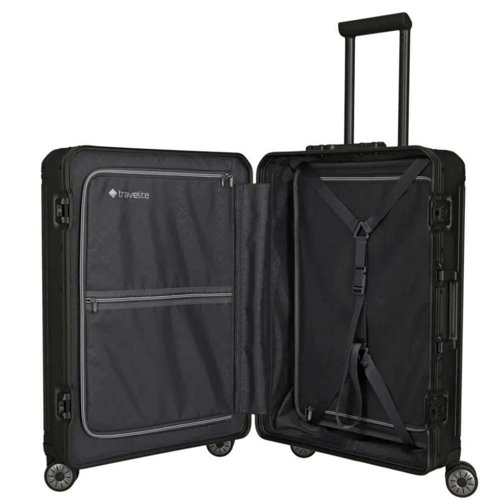 - Ausstattung: Trenn-/Packplatte, Reißverschlussfach, Netzfach, arretierbarer Griff