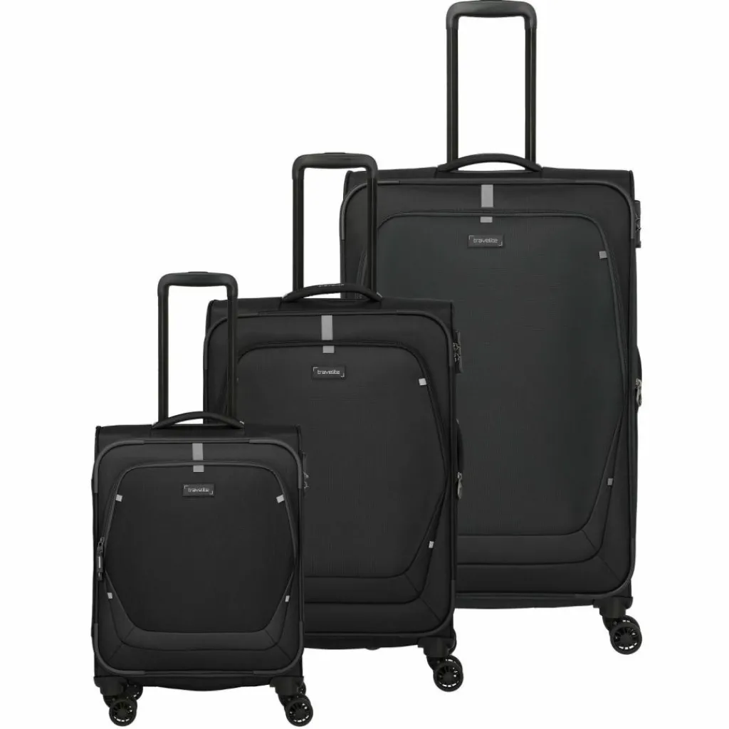 - Ausstattung: Tasche(n) außen, Reißverschlussfach, Netzfach, Dehnfalte, auf Trolley steckbar, arretierbarer Griff
