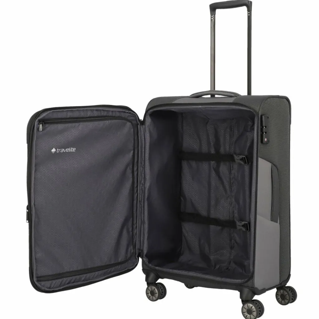 - Ausstattung: Tasche(n) innen, Tasche(n) außen, Reißverschlussfach, arretierbarer Griff