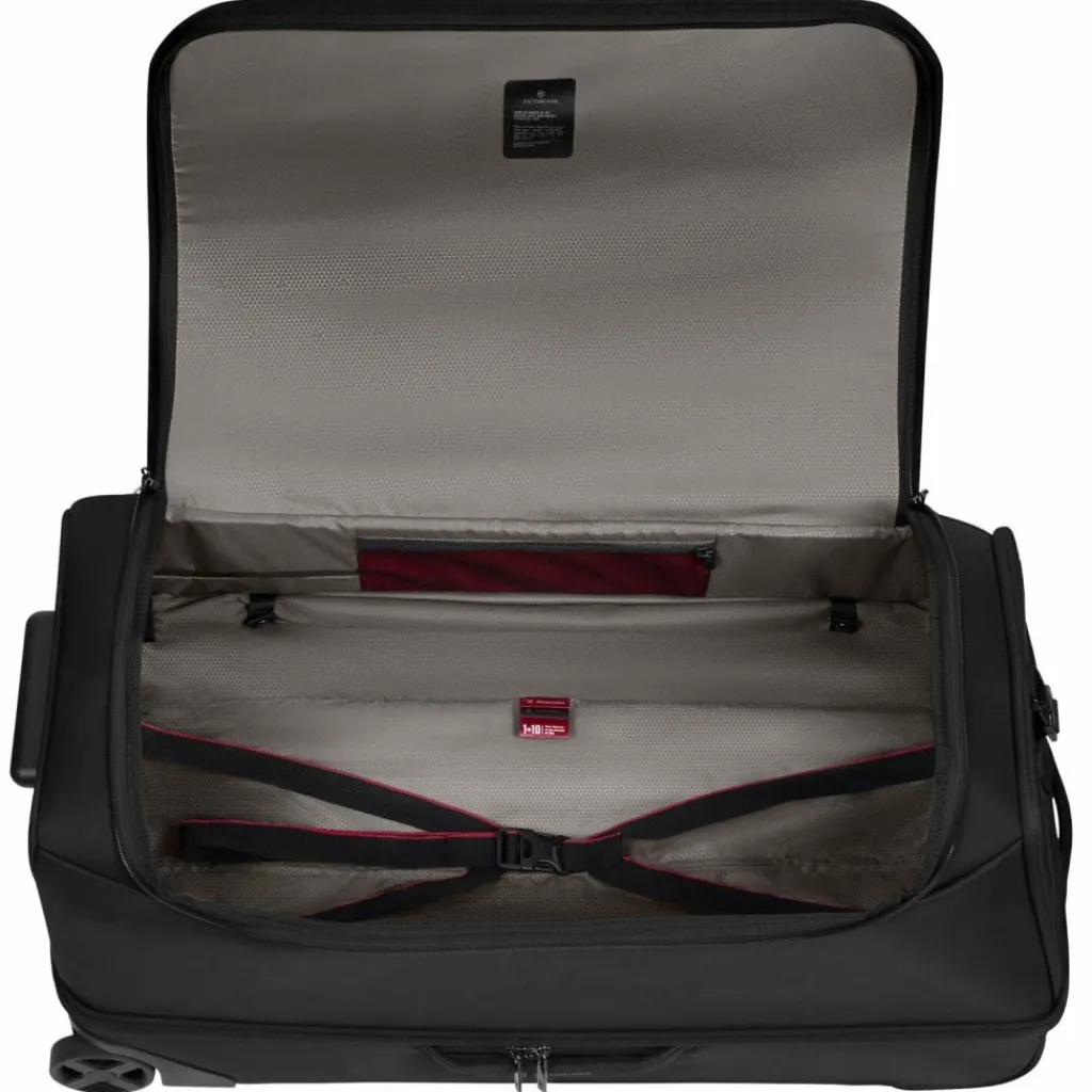 - Ausstattung: Wäschefach, Tasche(n) außen, Reißverschlussfach, Netzfach, Kreuzpackgurt, arretierbarer Griff