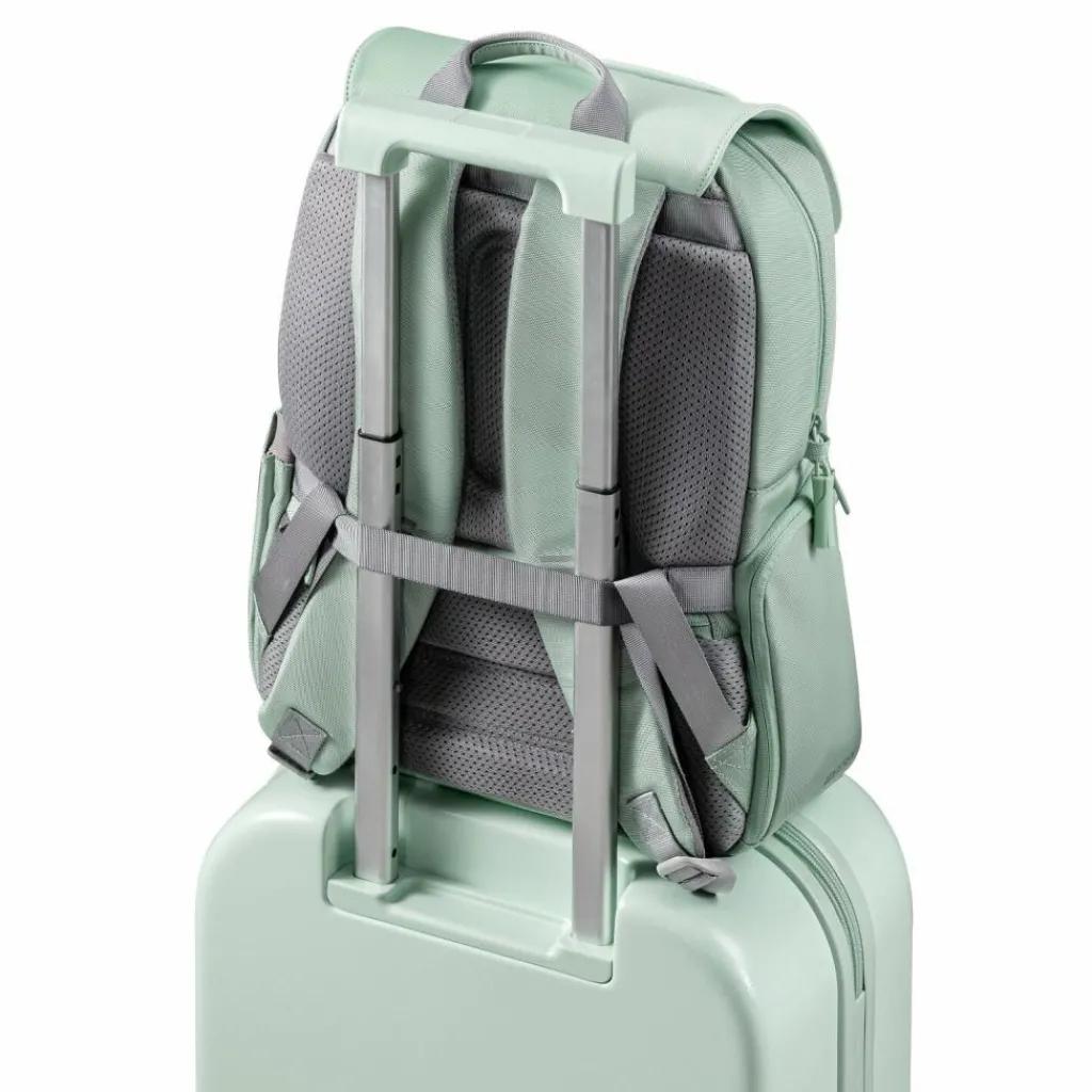 - Ausstattung: Trinkflaschenfach, Tasche(n) innen, Tasche(n) außen, Rückenpolsterung, Reißverschlussfach, Brillenschlaufe, auf Trolley steckbar