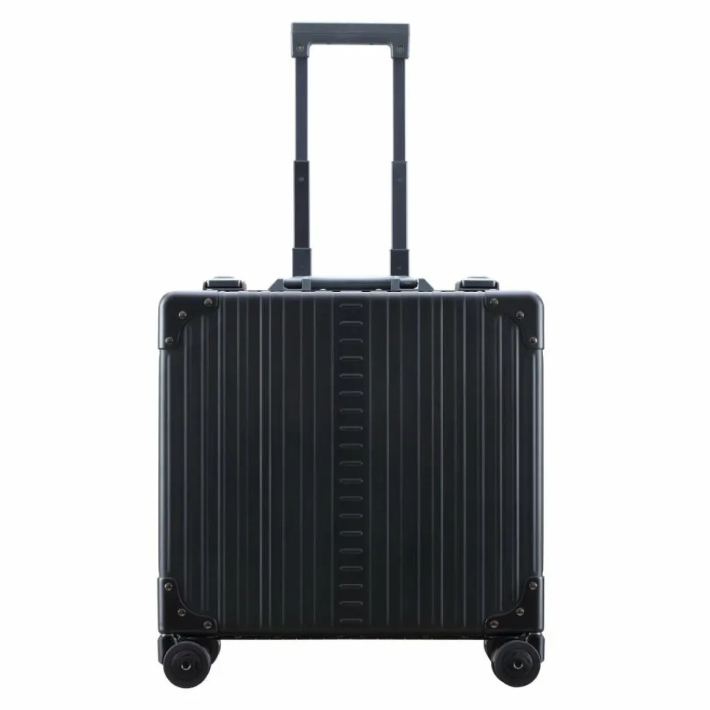 - Ausstattung: verstärkte Ecken, Tasche(n) innen, Reißverschlussfach, auf Trolley steckbar, arretierbarer Griff
