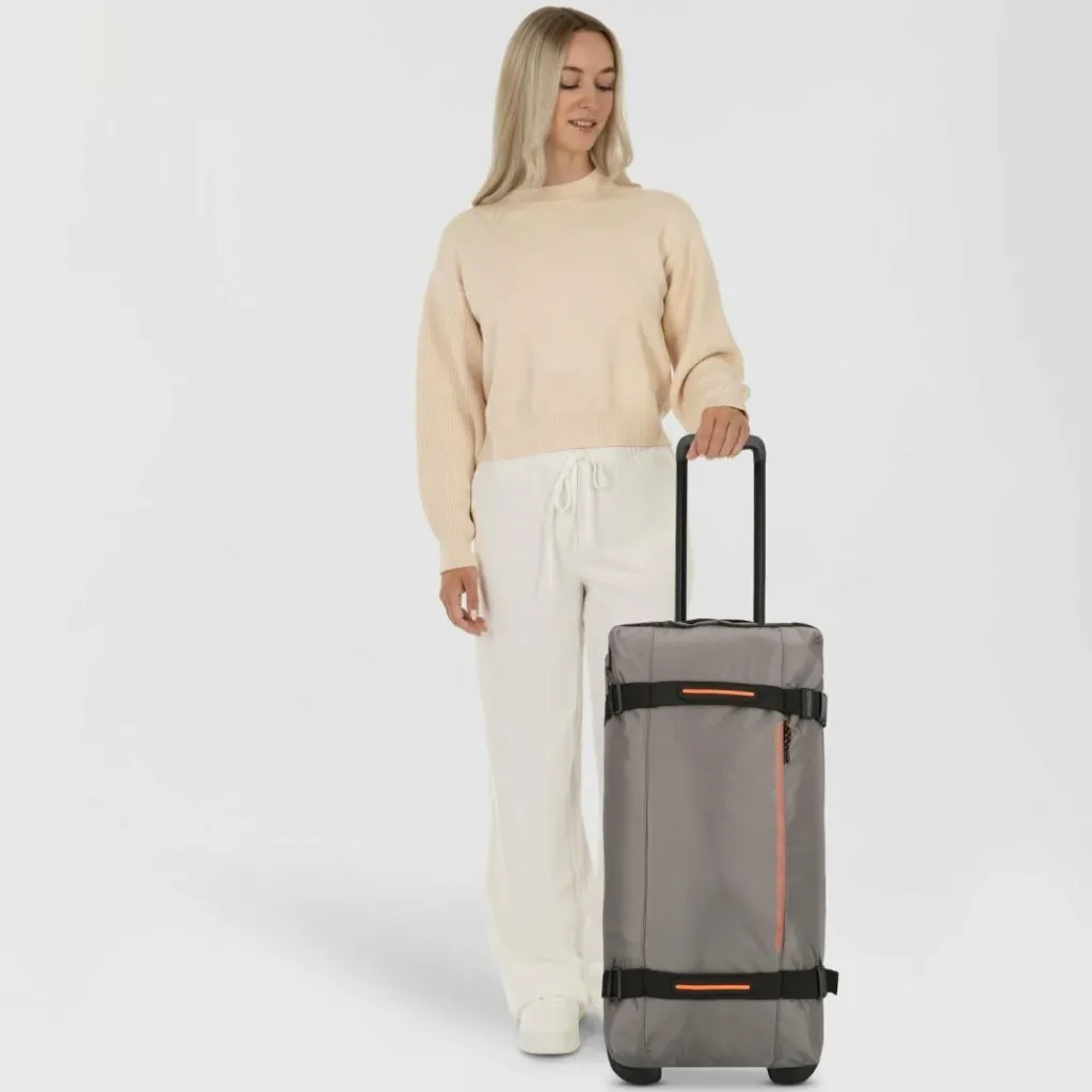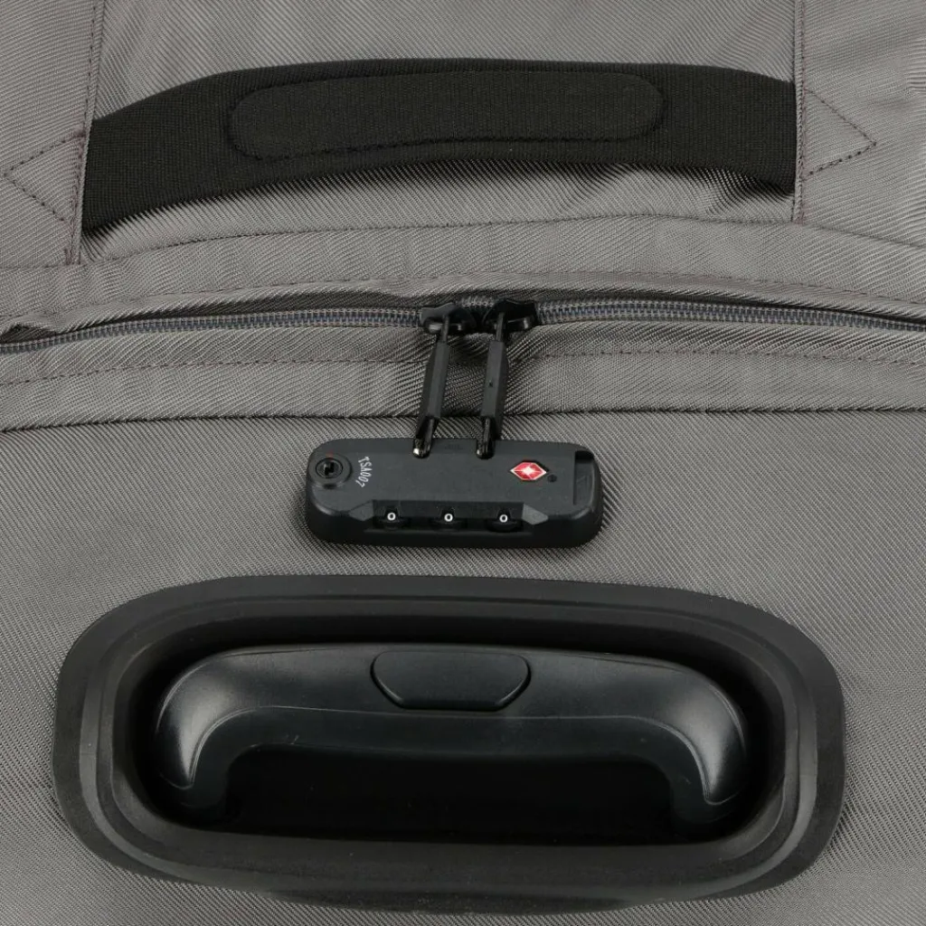 - Ausstattung: Wäschefach, Tasche(n) außen, Reißverschlussfach, Netzfach, Kreuzpackgurt, arretierbarer Griff