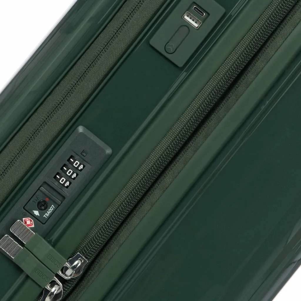- Ausstattung: Wäschefach, Tasche(n) außen, Reißverschlussfach, Dehnfalte, arretierbarer Griff, Anschluss für USB-Powerbank