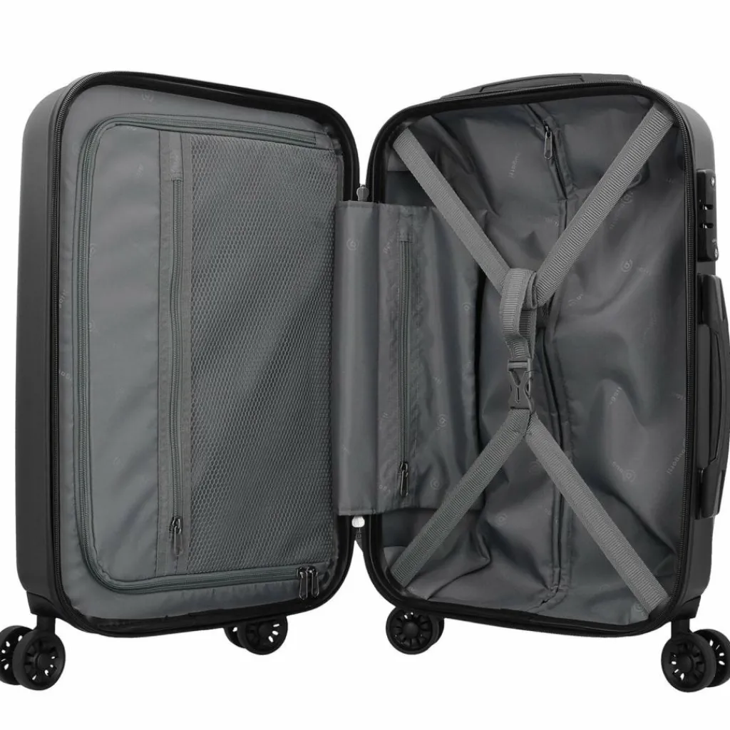 - Ausstattung: Tasche(n) innen, Reißverschlussfach, Netzfach, Kreuzpackgurt, Innenfutter, arretierbarer Griff