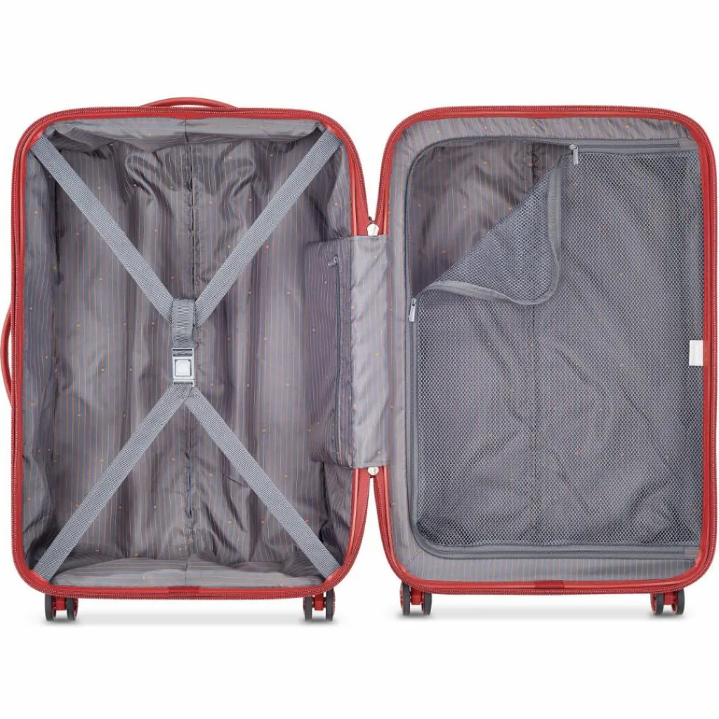 - Ausstattung: Wäschefach, Tasche(n) innen, Reißverschlussfach, Netzfach, Kreuzpackgurt, arretierbarer Griff