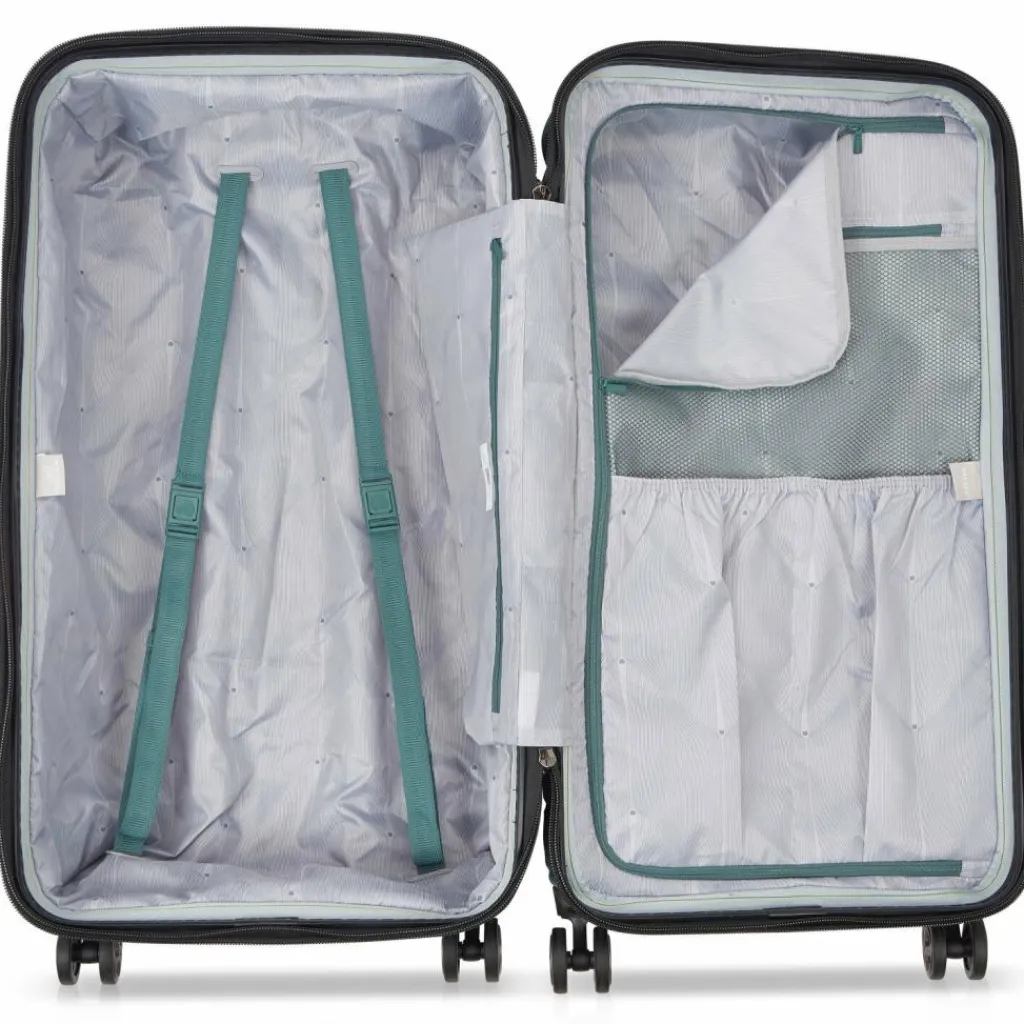 - Ausstattung: Tasche(n) innen, Reißverschlussfach, Netzfach, Kreuzpackgurt, arretierbarer Griff