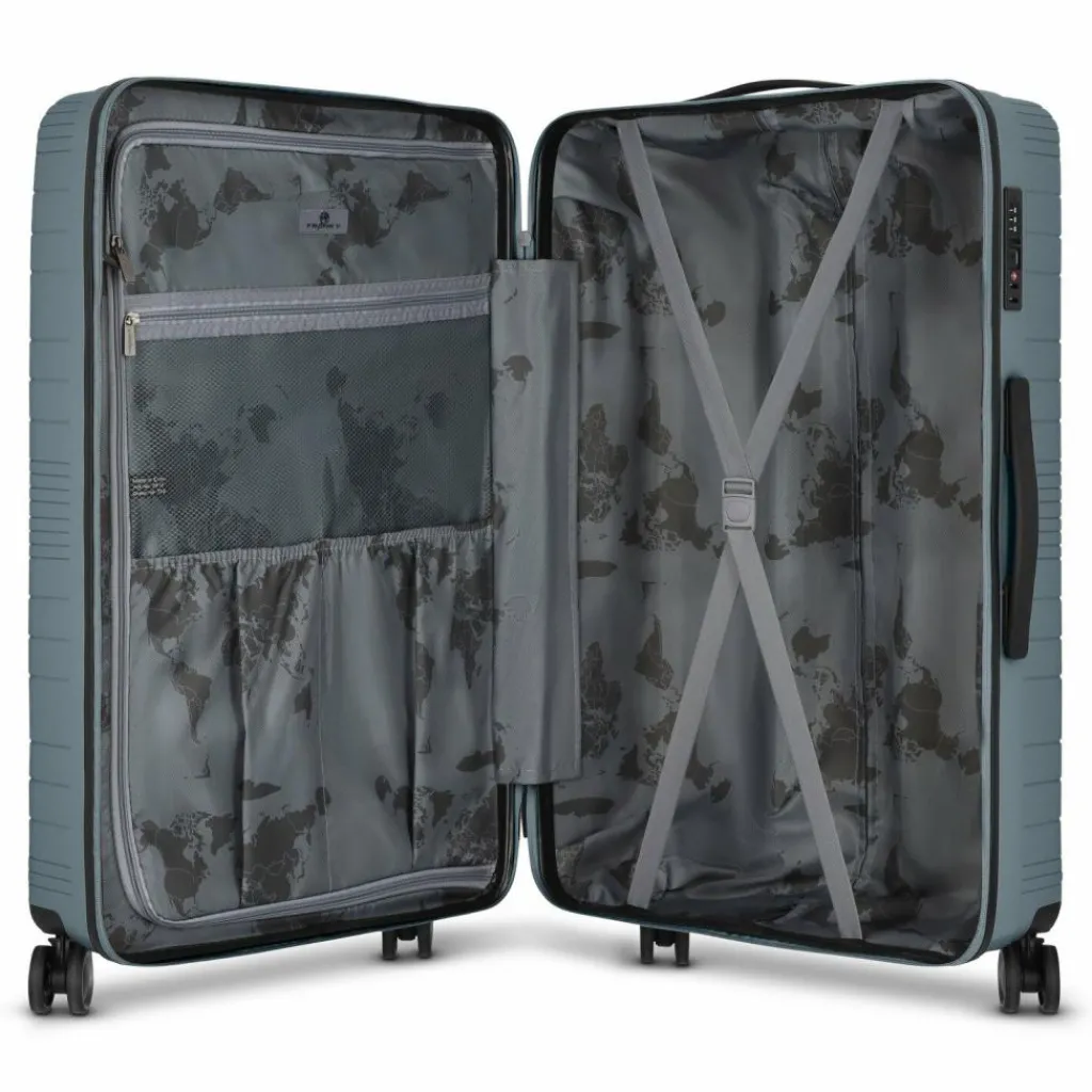 - Ausstattung: Wäschefach, Tasche(n) innen, Reißverschlussfach, Netzfach, Kreuzpackgurt, arretierbarer Griff