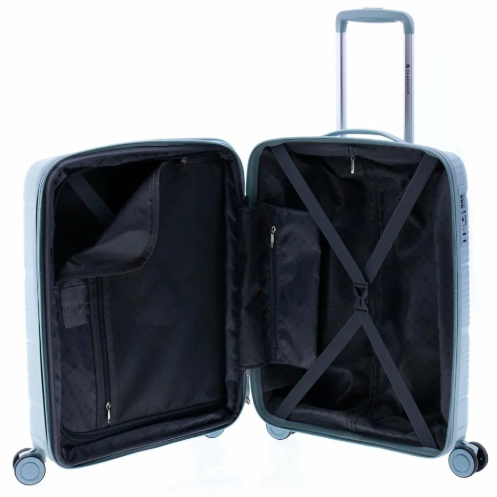 - Ausstattung: Wäschefach, Reißverschlussfach, Kreuzpackgurt, Dehnfalte, arretierbarer Griff