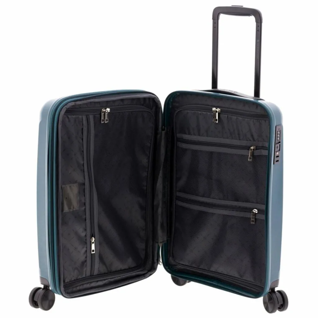 - Ausstattung: Wäschefach, Reißverschlussfach, Kreuzpackgurt, Dehnfalte, arretierbarer Griff