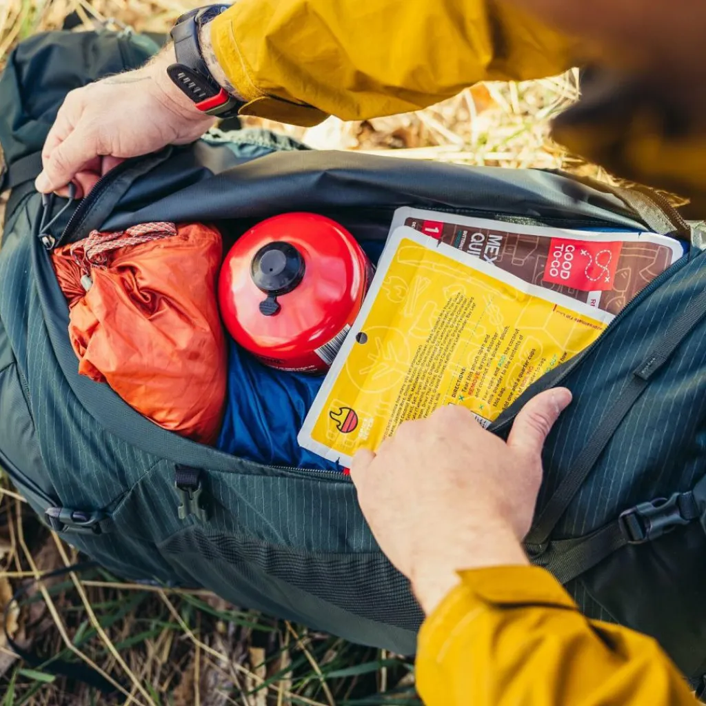 - Extras: Tragegriff, Regenüberzug, Notfallpfeife