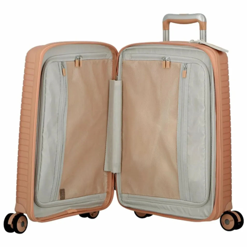 - Ausstattung: Tasche(n) innen, Reißverschlussfach, Netzfach, Dehnfalte, arretierbarer Griff