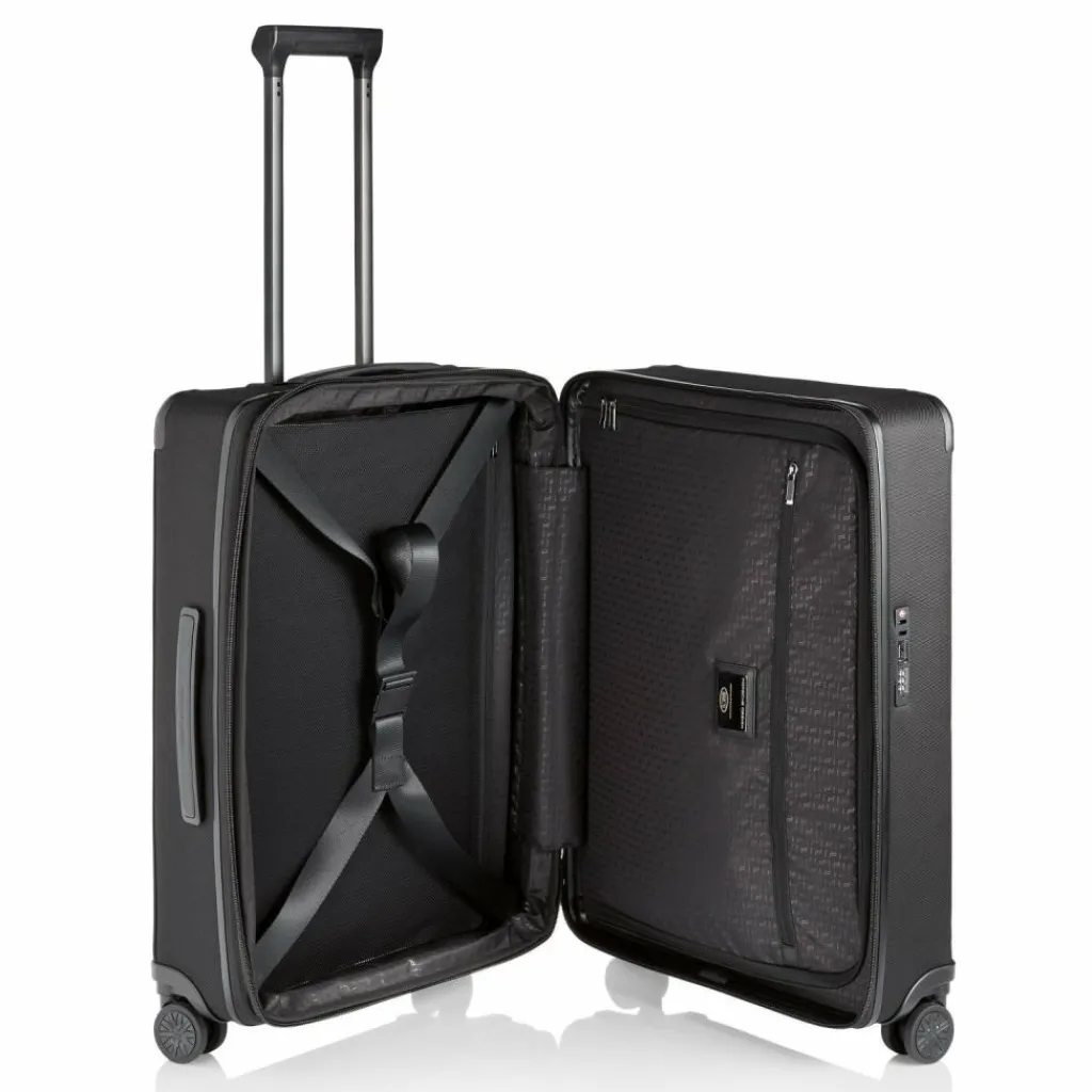 - Ausstattung:Wäschefach, Trenn-/Packplatte, Tasche(n) außen, Reißverschlussfach, Kreuzpackgurt, Dehnfalte, arretierbarer Griff