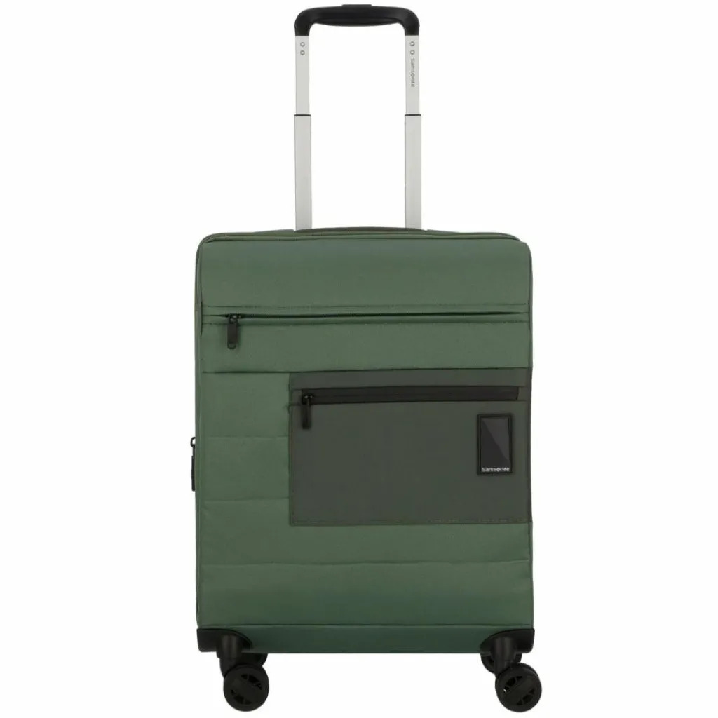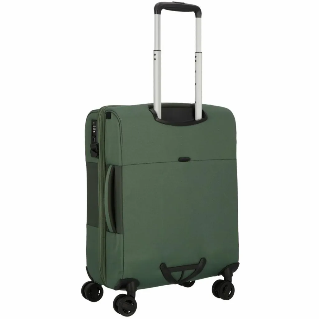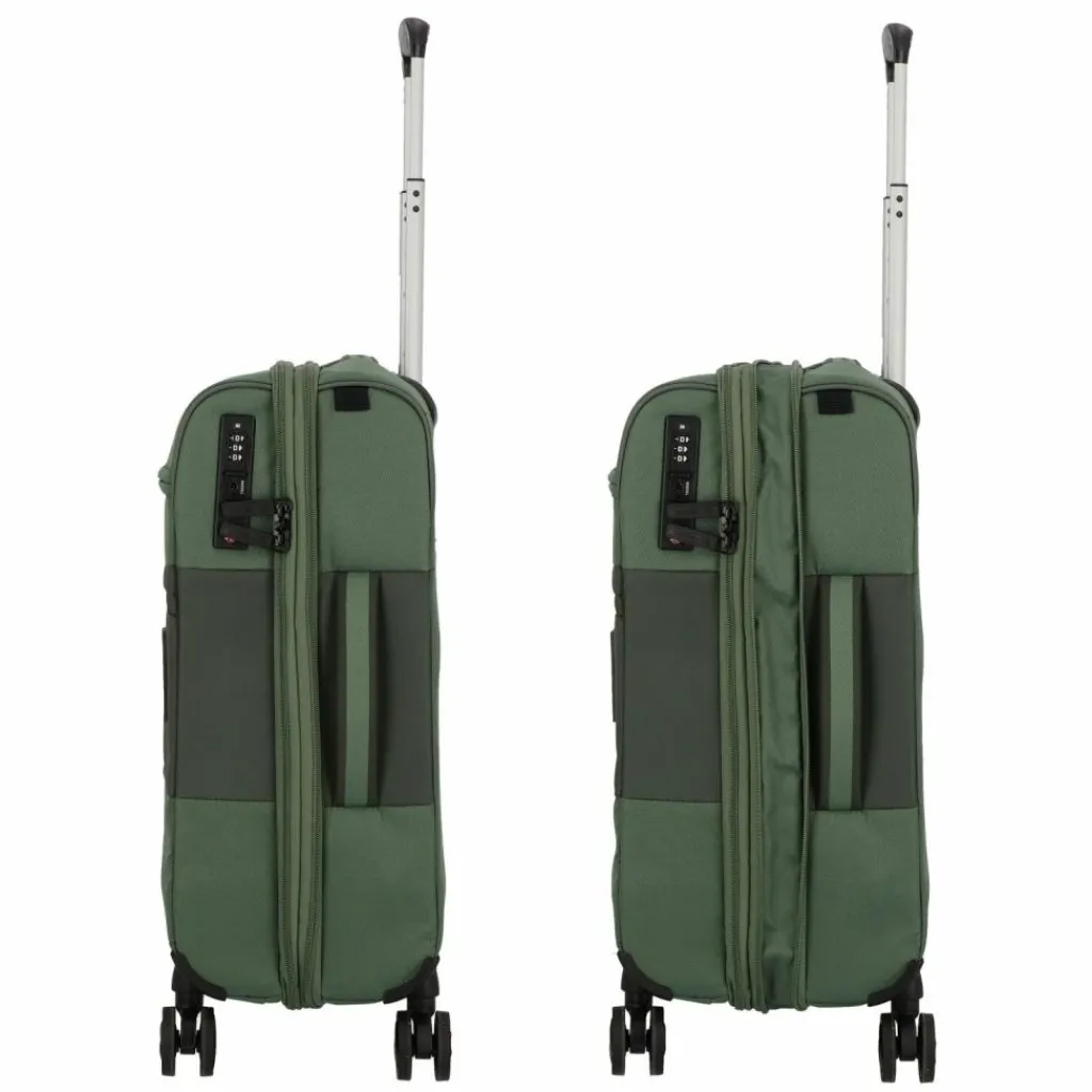 - Ausstattung: Tasche(n) innen, Tasche(n) außen, Reißverschlussfach, Netzfach, Kreuzpackgurt, Dehnfalte, arretierbarer Griff