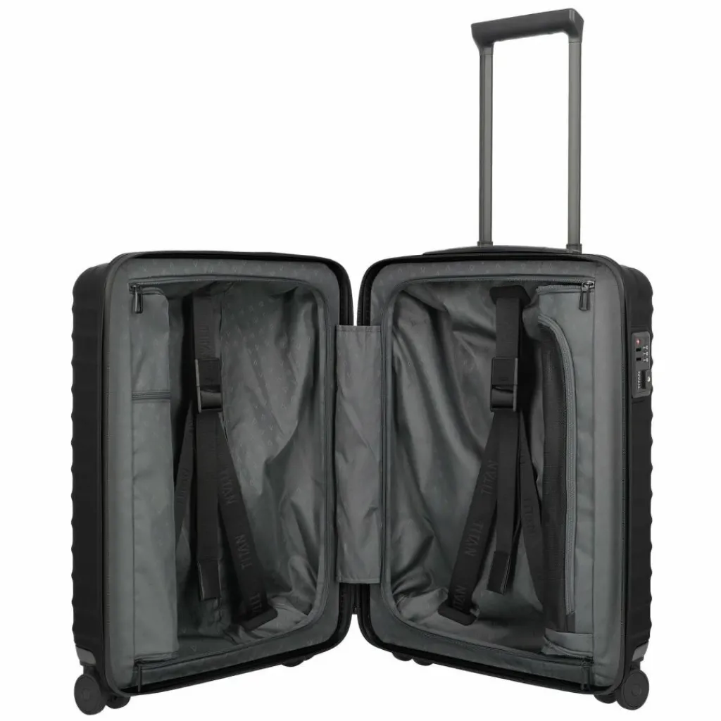 - Ausstattung: Wäschefach, verstärkte Ecken, Tasche(n) innen, Reißverschlussfach, Kreuzpackgurt, arretierbarer Griff