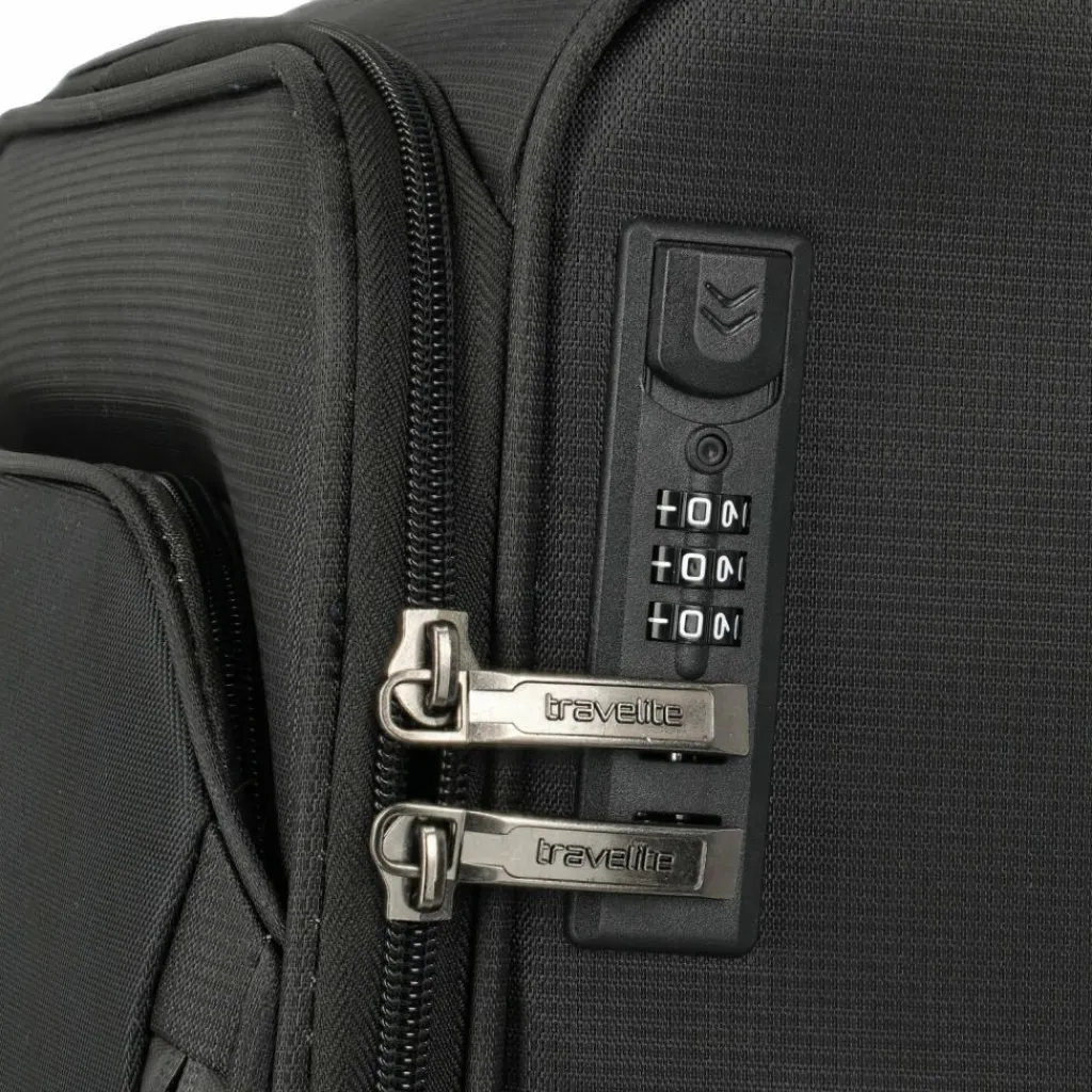 - Ausstattung: Tasche(n) innen, Reißverschlussfach, auf Trolley steckbar, arretierbarer Griff